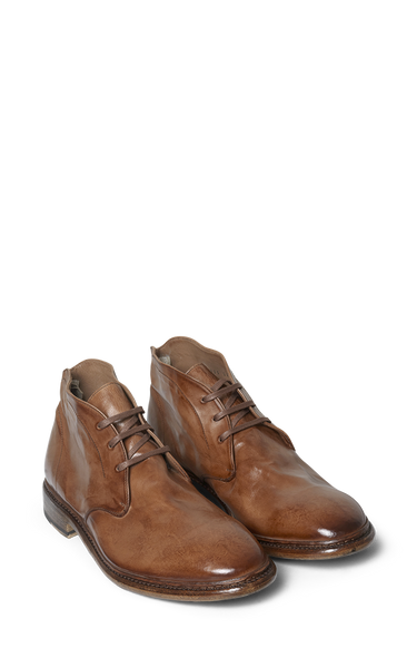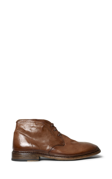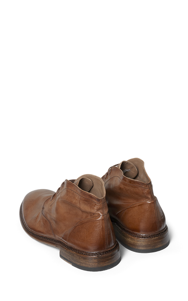 Nice boots in brown leather with three lace holes. The boots have a short shaft which gives them a light appearance and have leather soles covered with rubber forefoot and heel.