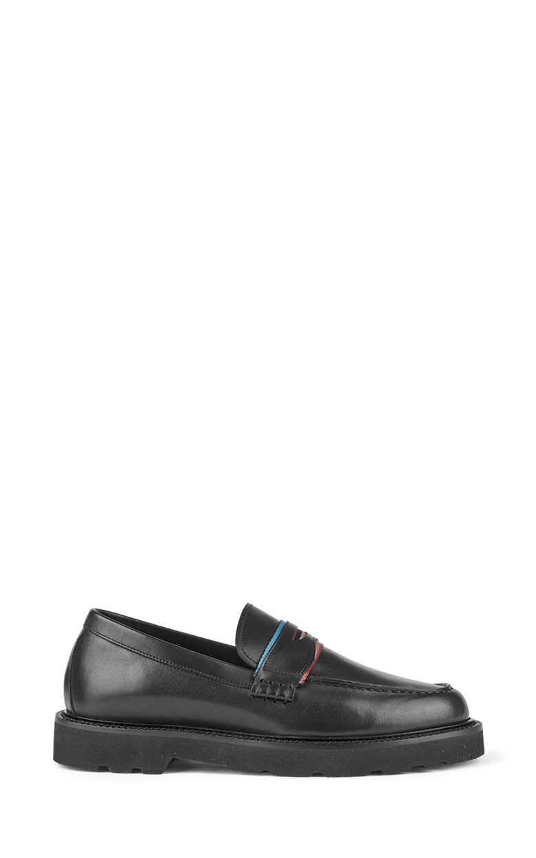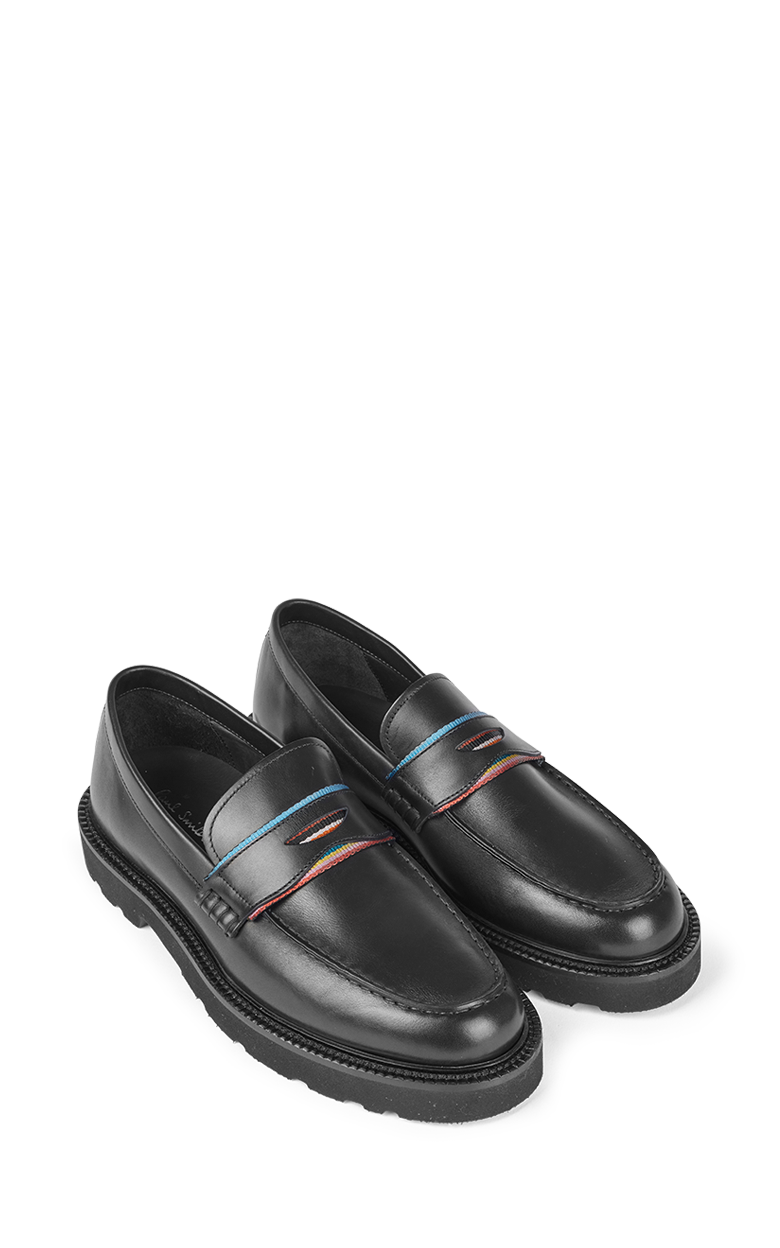Exclusive black loafers from Paul Smith in premium leather, designed with a classic and elegant silhouette. The clean lines and refined details create a timeless shoe that fits perfectly with both formal and casual outfits.