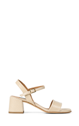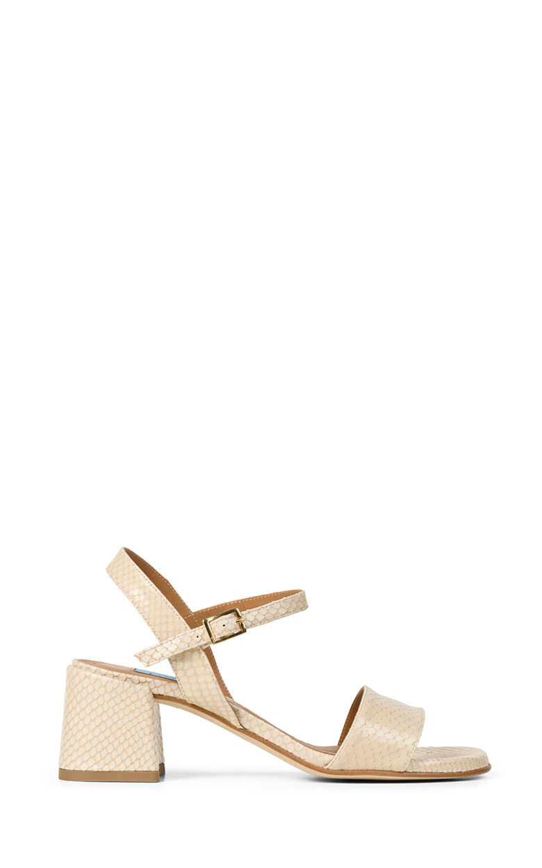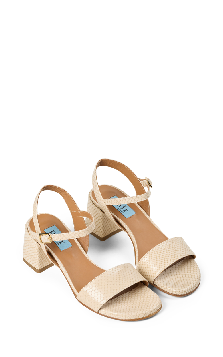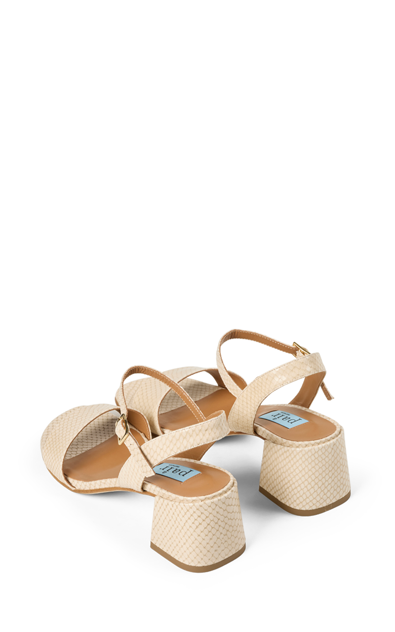 Elegant sandal in light leather with an embossed structure that gives an exclusive and refined expression. The wide front strap, adjustable ankle strap and stable block heel create a feminine silhouette with good comfort. A stylish sandal that is easy to style with both summer dresses, festive occasions and elegant everyday looks.