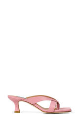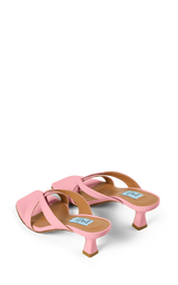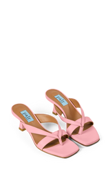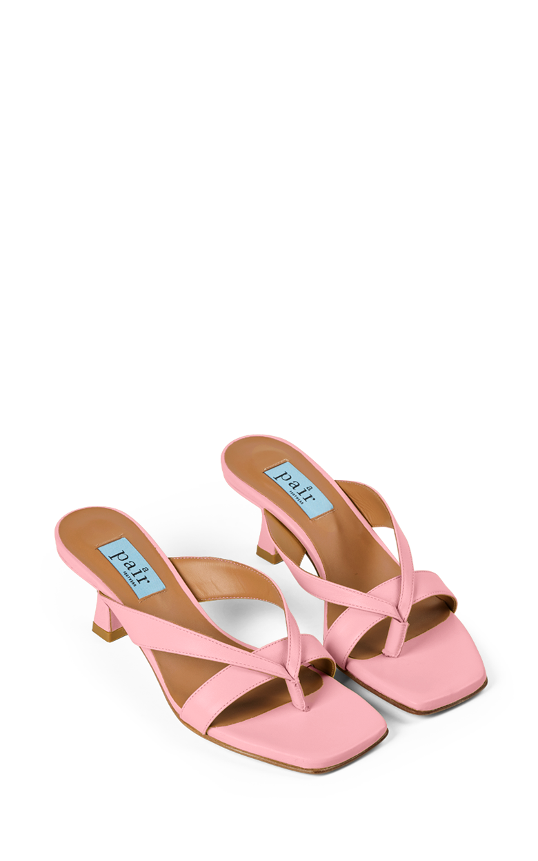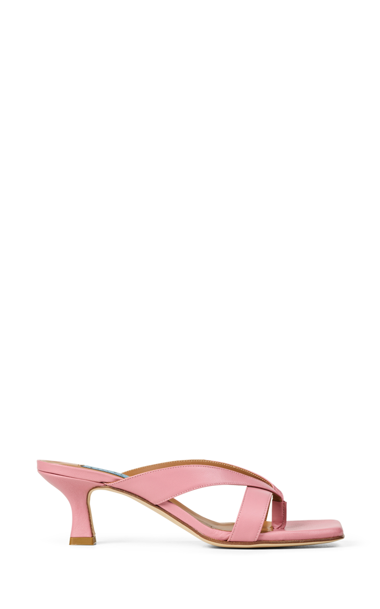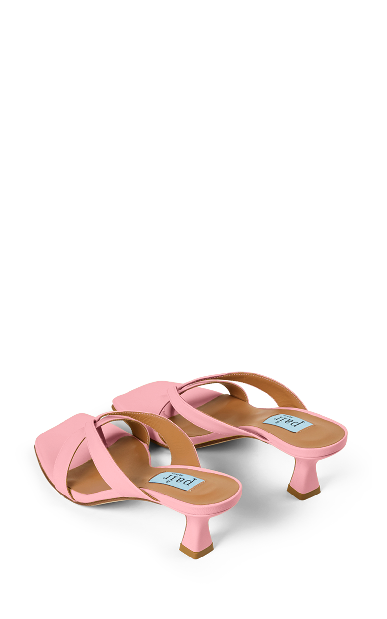 Elegant sandal in soft pink leather with feminine crossed straps and a modern square toe. The low heel gives a light and elegant lift, while the design creates a refined and summery look. A stylish sandal that is easy to style with dresses, denim and festive summer looks.