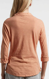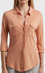 The classic and iconic lamella shirt from James Perse in 100% soft and delicious cotton. The shirt here has the finest peach inspired color and is perfect for summer.