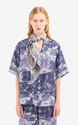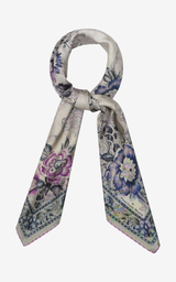 Scarf in an exclusive design, made of silk twill and decorated with a detailed floral print in lavender and deep indigo shades, creating an elegant and classic expression. The fine combination of colours and patterns adds a romantic and sophisticated touch. A stylish accessory that can be draped over a jacket or tied to a bag for an exclusive look.