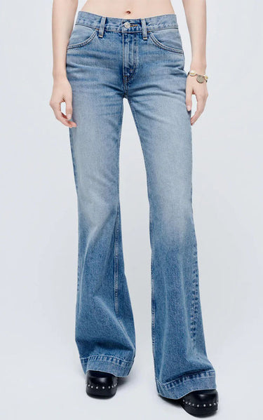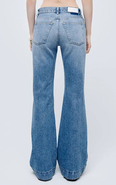 Cool, light denim blue jeans with a low waist and bootcut from Re/Done. The jeans have a retro 70s vibe that adds a cool edge to your outfit. They are designed with 2 pockets at the back and 2 at the front. Zipper and button closure.