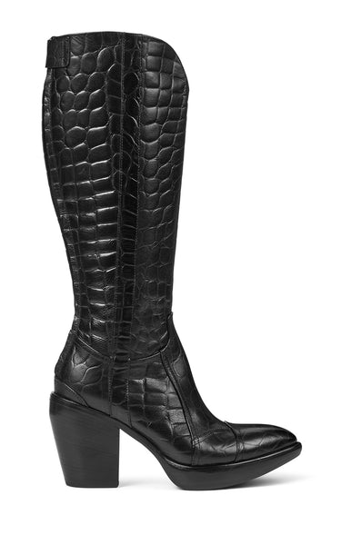 These beautiful cowboy inspired long boots from Rocco P. are a perfect combination of fantastic Italian craftsmanship, a beautifully embossed leather, cool raw cowboy details, but still in a super feminine look.