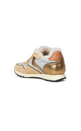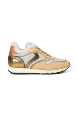 A classic Volie Blanche sneak with the sweet mix of gold, gray and a few shades of brown - with white details and sole - and brown laces. A perfect spring/summer sneak for a comfortable fit and a light and soft look.