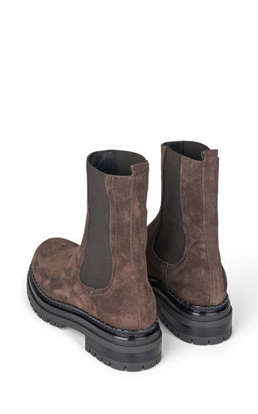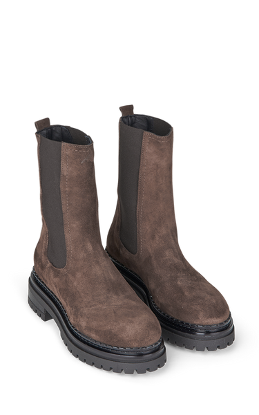 Beautiful boots in cool brown suede with elastic on both sides. They have a round toe and medium chunky rubber soles and a shaft length of approx. 21 cm.