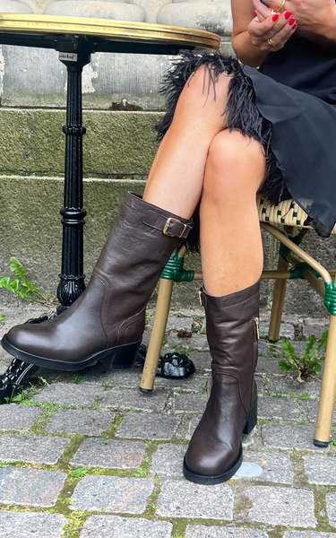 Super beautiful boots with a medium length shaft, a zipper on the inside and a buckle on the outside. They have a rounded toe and a soft heel of 5.5 cm.