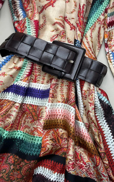 Belt in smooth Norwegian braided leather, square leather covered buckle. Made in Italy. The color is brown-black and the color tones are tempered according to the light in which you see it.