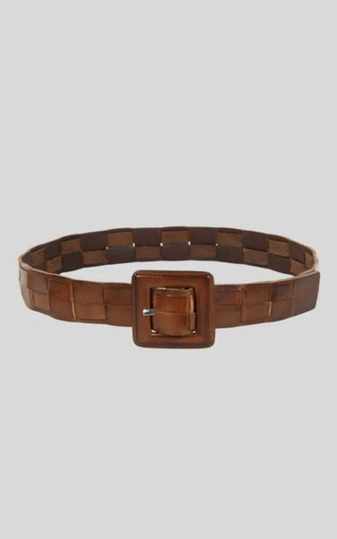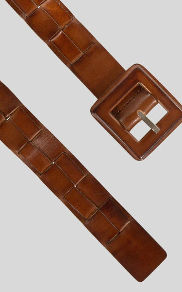 Belt in smooth Norwegian braided leather, square leather covered buckle. Made in Italy.