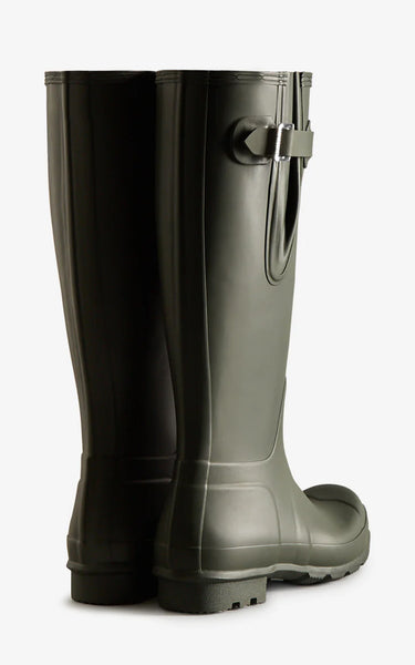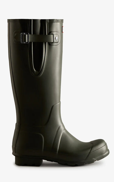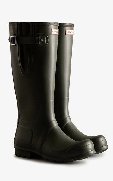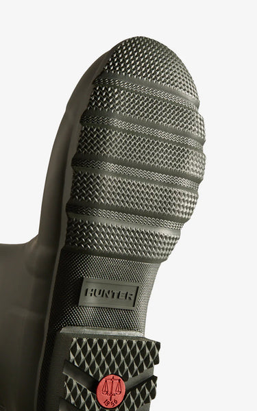 Designed for a flexible fit, the original reflects the iconic Original Tall with the addition of an expandable gusset on the side. Perfect for a wider calf, these dark green matte wellington boots offer ease of movement and adjust from the traditional tailored Hunter fit to a more relaxed shape when the wedge is fully extended. The original adjustable boot is handcrafted from natural rubber and is completely waterproof with a comfortable polyester lining and the signature Hunter Original tread. We recommend that all Hunter boots are worn with socks to protect the wearer's skin from contact with rubber.