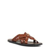 Beautiful cognac sandals in wavy leather with a cross over the foot.