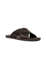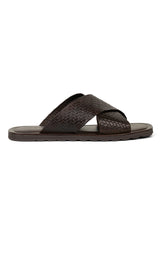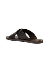 A classic and popular leather men's sandal from Apair, with a crossed band over the instep. The ankle strap has a braid printed in the leather. The comfort is top notch with soft inner soles and outer rubber soles. The sandal has a cool and raw look.