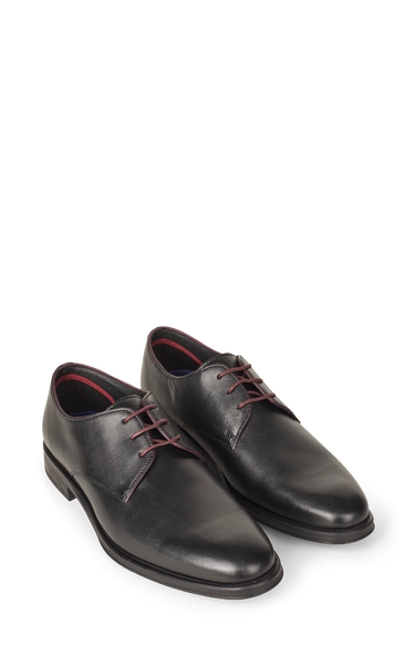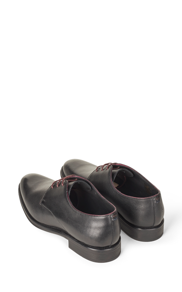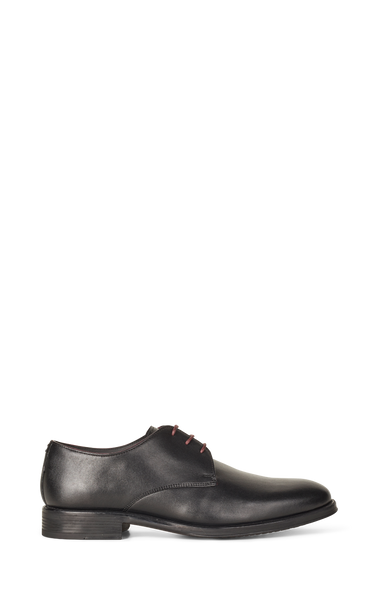 A beautiful classic from Paul Smith - made in black smooth leather with a narrower round toe, three eyelets with a nice red/brown lace and rubber soles.