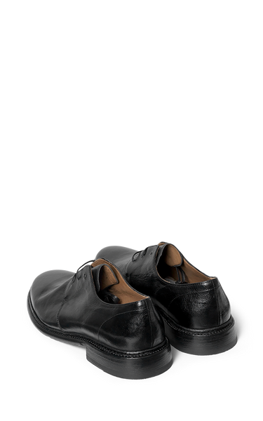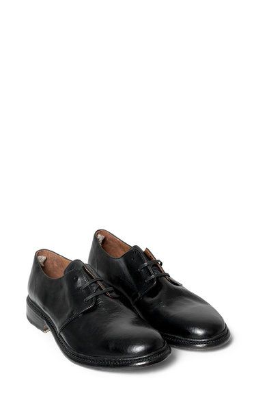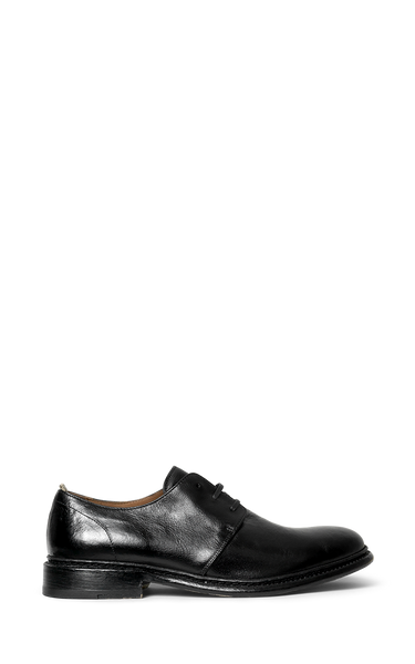 Nice classic shoes in black leather with three lace holes. They are made of washed leather, which gives the leather a more raw, cool look.