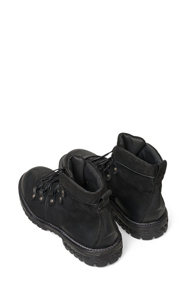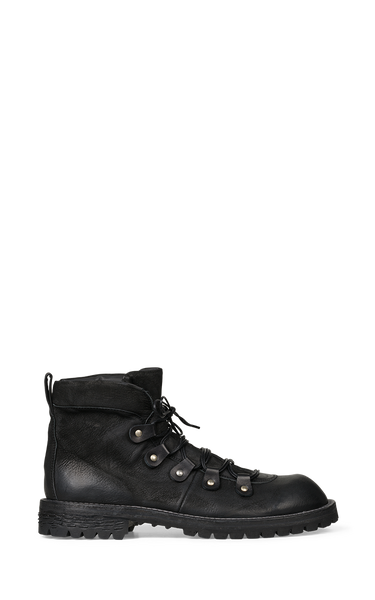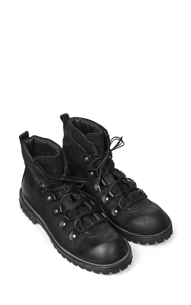 These cool black boots from Ernesto Dolani combine raw strength with timeless style. Made from waxed and heat-treated suede - which gives the leather a cool look and wear resistance - and with robust stitching and a thick rubber sole, they are built to last for both everyday life and adventures. The boots have a classic lace-up closure with metal eyelets and hooks, which ensures a good fit and extra stability.