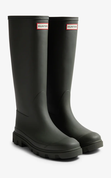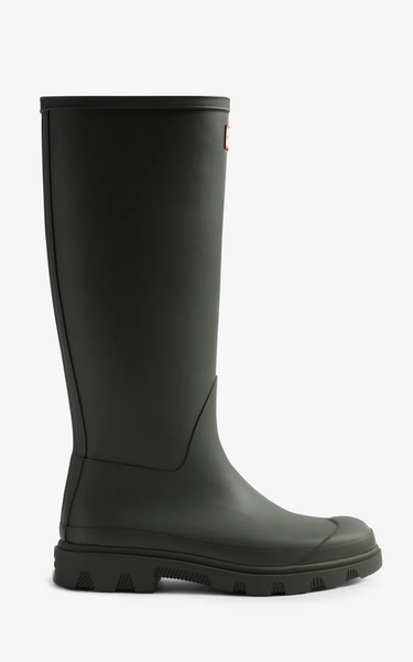 The new Unisex Downpour Tall Boot from Hunter combines style, comfort and functionality. The boot is 100% waterproof, handmade from natural rubber with a matte finish and designed with a modern, roomy fit around the calf. The lightweight sole has a unique pattern inspired by the shapes of nature and provides extra grip on wet surfaces. The lining is made from 100% recycled polyester and the boot is certified vegan. Perfect for both city and nature - remember to wear socks for optimal comfort.