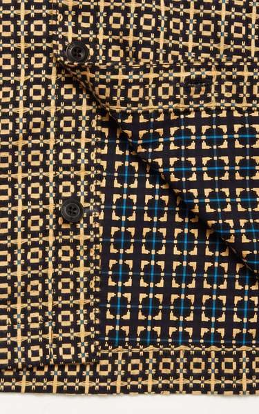 A versatile wardrobe classic, the Manga Overshirt is designed in a relaxed fit with a single chest pocket, making it as practical as it is refined. Sewn in 100% cotton with a robust, yarn-dyed pattern and subtle Eastern references, it embodies both cultural heritage and everyday functionality.