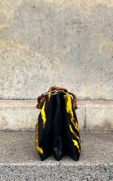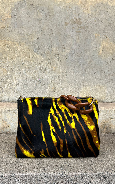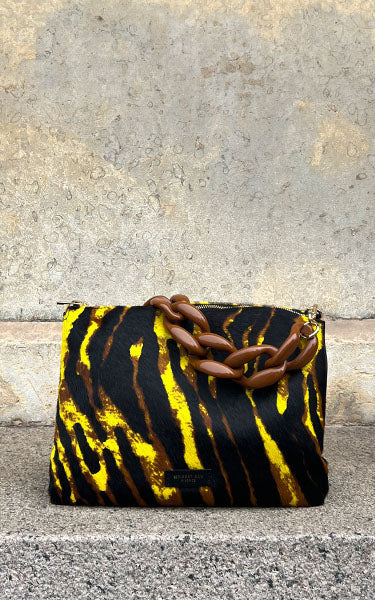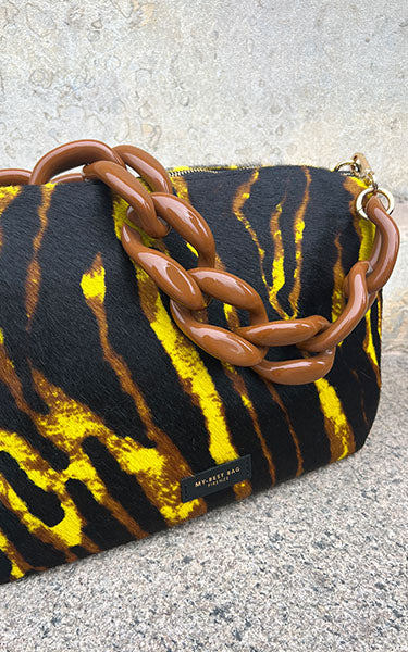 Cool bag in a beautiful tiger striped print of "Ponyhair" and smooth leather. The bag comes with both a strap in the form of a caramel-colored chain, as well as a classic black leather strap. The bag has a good layout with closed and open pockets. A bag of delicious quality that is guaranteed to make your outfit stand out from the crowd.