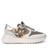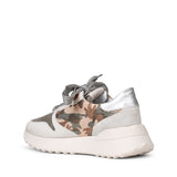 Very elegant and cool sneakers from Méliné. The military look with green, pink and beige print is perfect together with the metallic look and cream colored chunky sole.