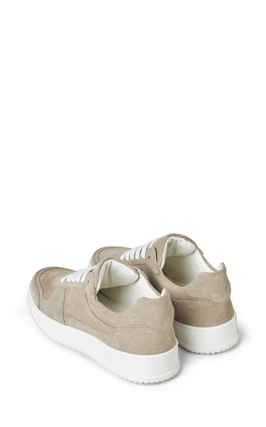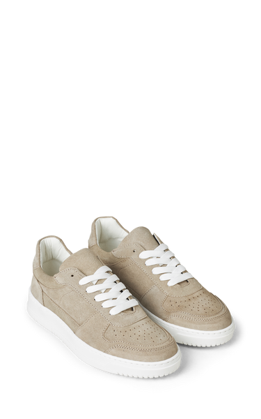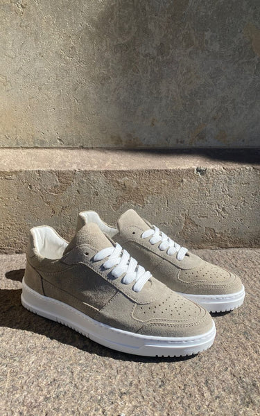 Cool sneakers in a nice greige tone suede. White laces, white rubber soles and soft leather insoles.