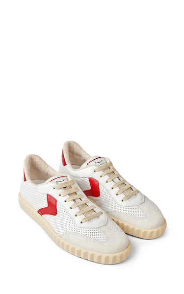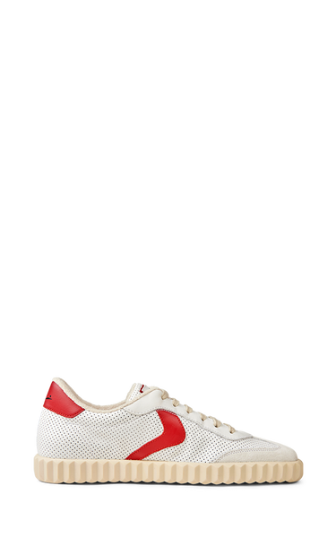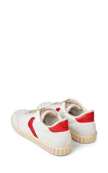 Perfect summer sneakers in white perforated leather, with red details and cool grooved soles.