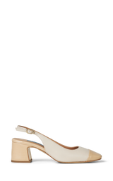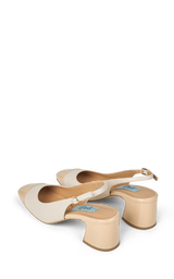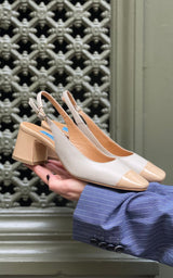 Finest pumps with 5 cm heel and slingback strap. Beautiful bright contrasting colors in leather and patent leather on the toe.