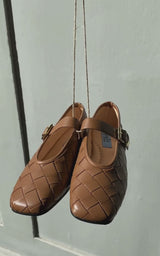 Beautiful ballerina-inspired shoes from apair in braided leather. They are detailed with fine buckles that can be adjusted over the instep.