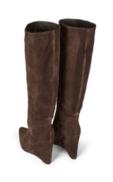 The Wedge Suede Boot is an elegant long-sleeved boot in soft brown suede. Designed with a built-in wedge heel, it gives a sleek and sophisticated look while ensuring maximum comfort. With its clean and minimalist design, this boot is a versatile choice that can be styled for both everyday and more festive occasions.