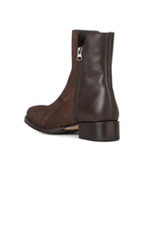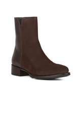 Beautiful classic flat boots in brown suede on the front and smooth brown leather on the back. They have a zip on the side and a 4 cm. heel.