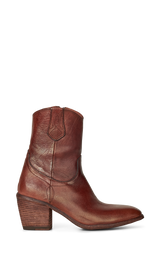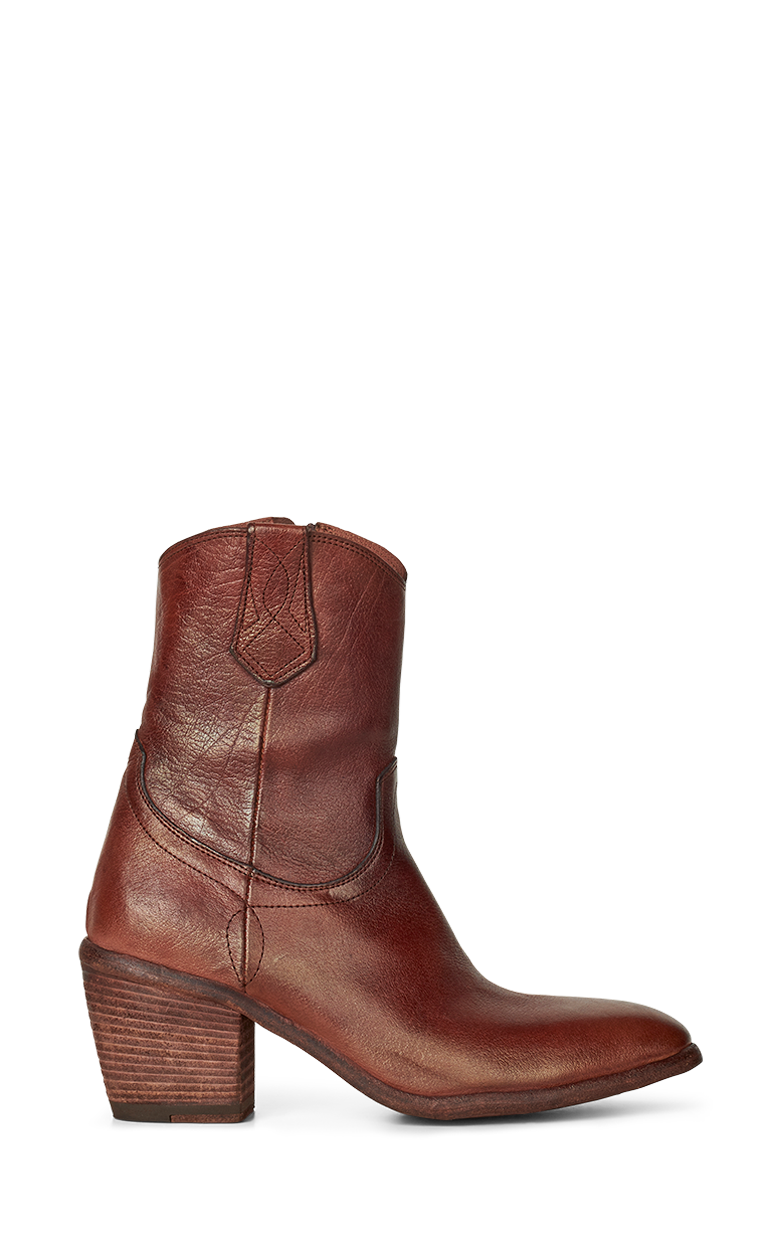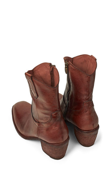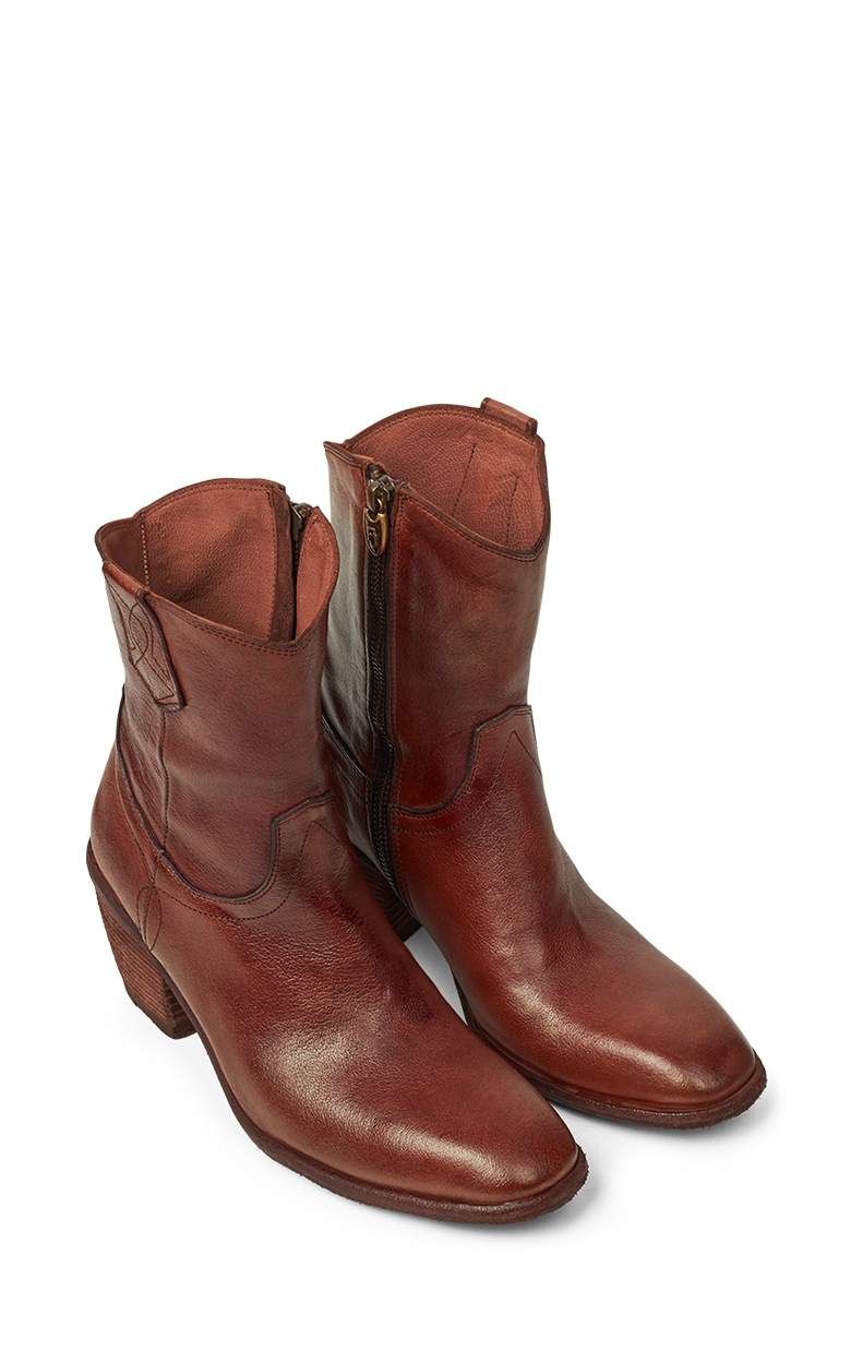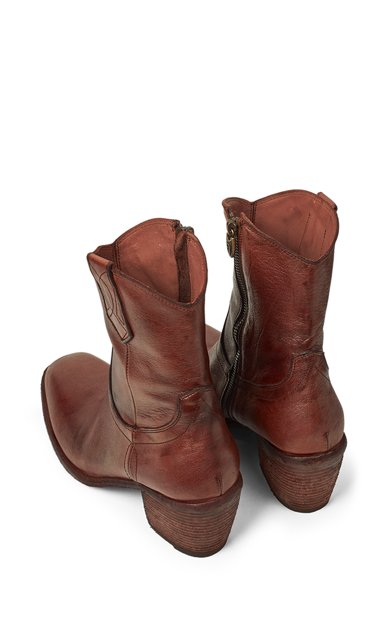 Cocco Boot from Italian Fauzian Jeunesse is a handmade western-inspired boot in soft brown leather. With its simple design, slightly rounded toe and the classic cowboy heel of approx. 5 cm, the boot has a timeless and authentic look. A versatile model that can be styled both raw with jeans or feminine with dresses and skirts.