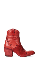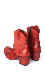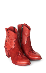 Cool western inspired boots in red suede and smooth leather. The boots have beautiful details in with "flame cutouts" in the leather.