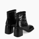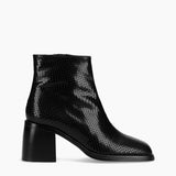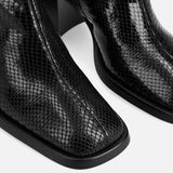 These black ankle boots from Freelance are a must-have in anyone's shoe collection. Made in black python-print leather, and with a square toe, as well as an eye-catching ultra-stable 7 cm heel. The perfect height to elongate your legs without compromising on comfort.
