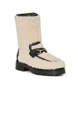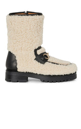 Cool, warm and comfortable - these shearling boots guarantee to keep your feet warm. The off-white shearling on the outside makes the boots look soft and airy - and adds a super cool edge to your perfect winter look.