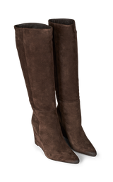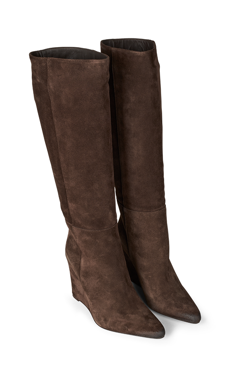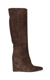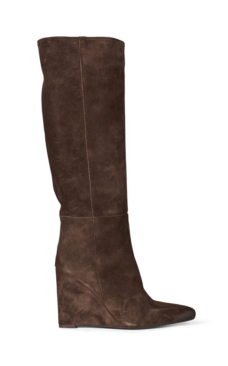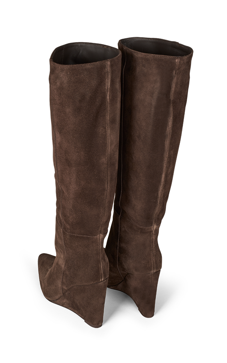 The Wedge Suede Boot is an elegant long-sleeved boot in soft brown suede. Designed with a built-in wedge heel, it gives a sleek and sophisticated look while ensuring maximum comfort. With its clean and minimalist design, this boot is a versatile choice that can be styled for both everyday and more festive occasions.