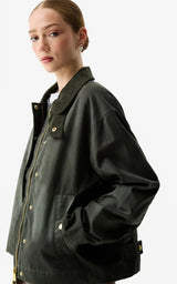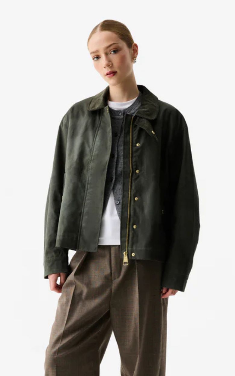 The iconic Leith Oversized Waxed Jacket is a modern interpretation of the classic British outdoor jacket - built to last season after season. Made from 100% cotton with Hunter's durable Durawax 14oz coating , making the jacket resistant to wind and weather without compromising on comfort.