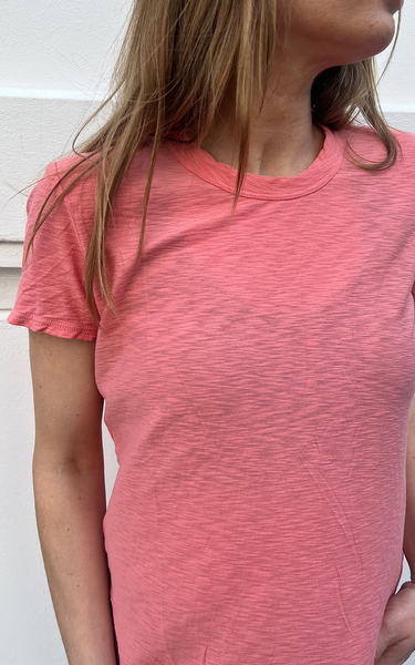 The James Perse Sheer Slub Crew Neck Tee is made from the classic 100% cotton. The technique behind the delicious look is that James Perse uses the back of the fabric to add extra texture. The t-shirt is tight-fitting with a round neckline and a curved hem. The t-shirt is dyed with extra softeners for a soft and used feel.