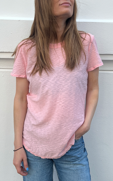 The James Perse Sheer Slub Crew Neck Tee is made from the classic 100% cotton. The technique behind the delicious look is that James Perse uses the back of the fabric to add extra texture. The t-shirt is tight-fitting with a round neckline and a curved hem. The t-shirt is dyed with extra softeners for a soft and used feel.
