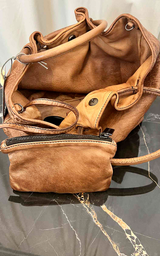 Beautiful bag from Italian Numero10. Numero10 is known for their craftsmanship and quality materials that last a lifetime. The bag is made of soft calfskin in a beautiful light cognac - the leather has a raw look which gives the bag a cool finish. The bag closes with a button.