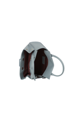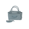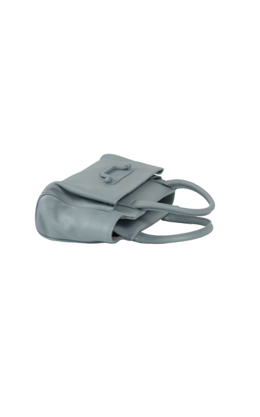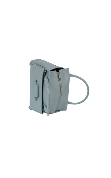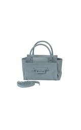 Beautiful medium-sized bag in light blue leather with double handles. The bag has a large compartment and an inside pocket with zipper. A longer crossbody strap in the same material as the bag is included.
