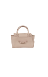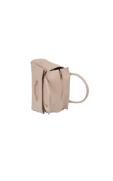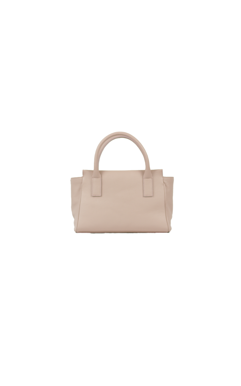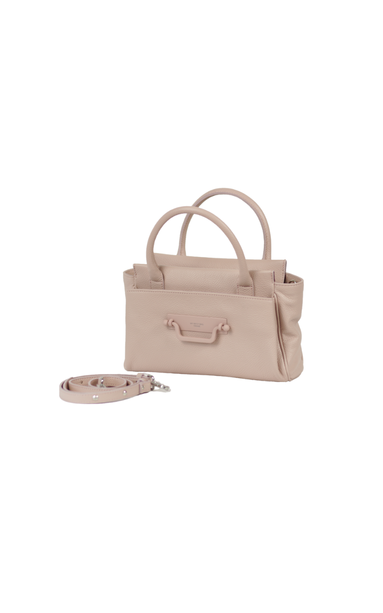 Beautiful medium-sized bag in powder pink leather with double handles. The bag has a large compartment and an inside pocket with zipper. A longer crossbody strap in the same material as the bag is included.