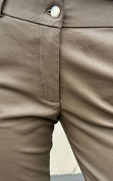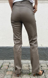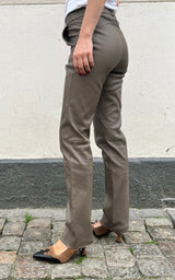 Cool leather trousers in a beautiful grey-brown colour. The trousers hug the body nicely and the stitching details compliment the body. The lambskin quality is soft and very comfortable. The leather is mixed with a lycra material that gives the trousers stretch. This also means that the leather will not expand, like other leather trousers.