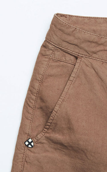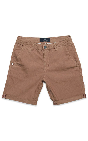 The well-known Teo Shorts in a dry cotton/linen blend fabric with comfort stretch. Equipped with contrast lining, Blue de Gênes flag studs, logo embroidery and just the right amount of stretch, these chino shorts will make the perfect everyday shorts on warm days. The material is dyed for a vintage look and with the Blue de Genes story printed on the pocket lining.