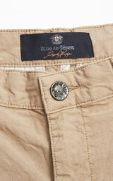 The well-known Teo Shorts in a dry cotton/linen blend fabric with comfort stretch. Equipped with contrast lining, Blue de Gênes flag studs, logo embroidery and just the right amount of stretch, these chino shorts will make the perfect everyday shorts on warm days. The material is dyed for a vintage look and with the Blue de Genes story printed on the pocket lining.