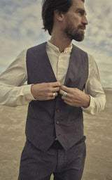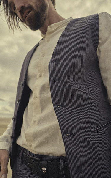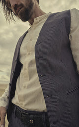 The Canna Waistcoat is made from the perfect blend of cotton and linen with a thin pinstripe - both classic and casual. It has two welted front pockets, buttons made of buffalo horn and an adjustable buckle at the back.