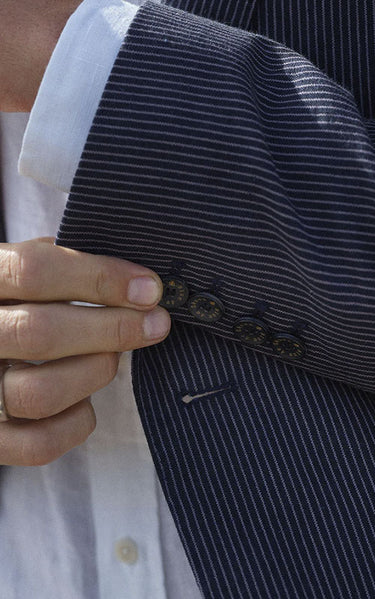 The Leopardi Blazer is a perfectly tailored blazer with patch pockets and a center split. Made from the perfect blend of cotton and linen and equipped with a thin pinstripe - both classic and casual. Half-lined with a breast pocket, an inner pocket and buttons made of buffalo horn.