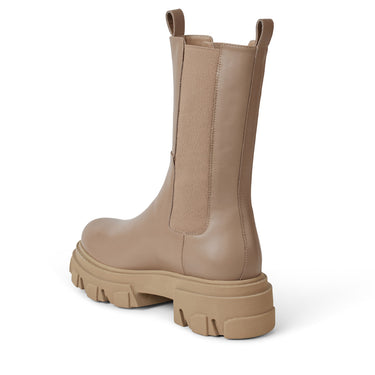 We LOVE these Chunky boots! With smooth light beige leather, light beige elastic on both sides and a beautiful light chunky beige colored sole.
