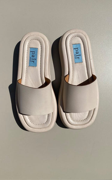 A soft, delicious, chunky sandal in off-white leather.