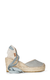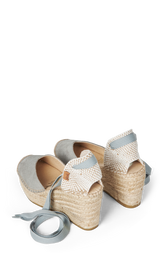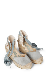 Beautiful espadrilles with a wedge heel in beautiful green-gray suede. They have an 8 cm heel and a ribbon to tie around the ankle. Handmade in 100% natural and organic materials such as jute rope, which allows Vidorreta shoes to adapt to the feet.