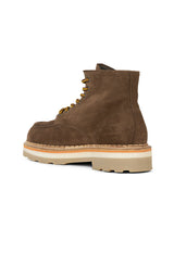 Super cool boots from Barracuda, in beautiful brown suede. It is perfect for a cool everyday outfit. It features rubber soles, leather insoles, a square toe, discreet stitching details, a yellow/brown lace and an orange stripe on the soles as the perfect detail.