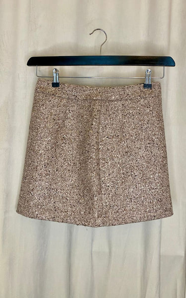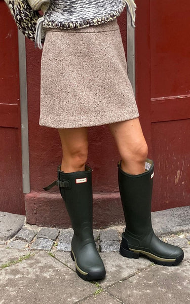 A classic miniskirt in a nice wool blend in beige shades. Made from a textured wool, the bottom is designed to be worn season after season. If you want to style it at the waist, we recommend you go down a size.